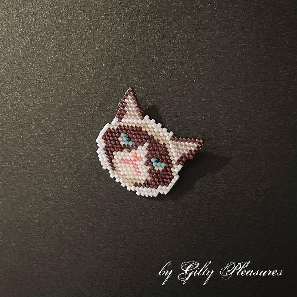 Brooch: featuring Japanese seed beads, 14K gold-plated chains and 14K gold-plated elements. Charm size ~3.4cm (W) x 3.3cm (H).