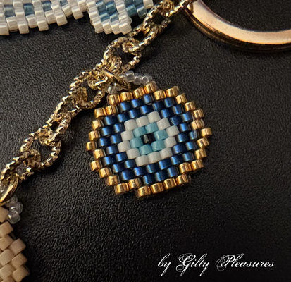 Keychain: a bespoke piece featuring Changi Control Tower, evil eye & airplane charms made with handwoven Japanese delica beads.