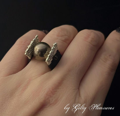 Ring: an eye-catching piece featuring meticulously handwoven Japanese delica beads and Swarovski pearl. Ring band height ~1.4cm.