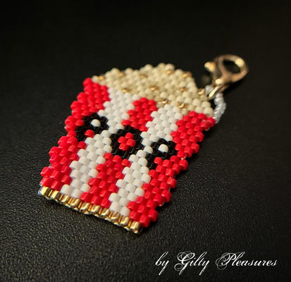 Charm: a cute piece of a bucket of popcorn featuring handwoven Japanese delica beads. Charm size ~2.7cm (W) x 3.6cm (H).